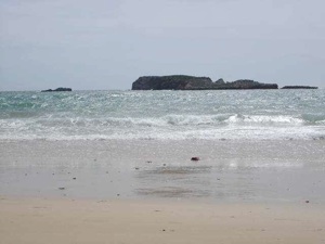 Martinhal is a aprox. 2-3km wide sandy and partly rocky bay next to the cliffs of Sagres. The beach lies between the sea and a small, smelly laguna and ends on both sides at colourful cliffs. There is one large rock in the middle of the bay about 200-300m off the beach (see picture).